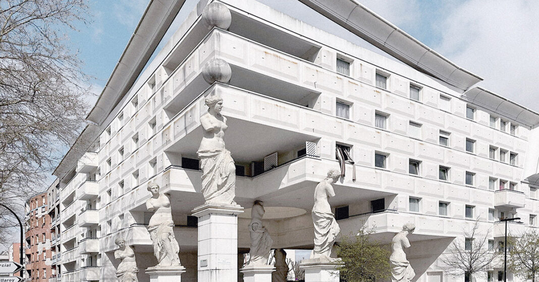 Spanish-born architect Manuel Núñez Yanowsky’s apartment dwellings are instantly recognizable for their oversized take on classical sculpture. Equal parts theatrical and ironic, the structures critique the enduring performative power of architecture.