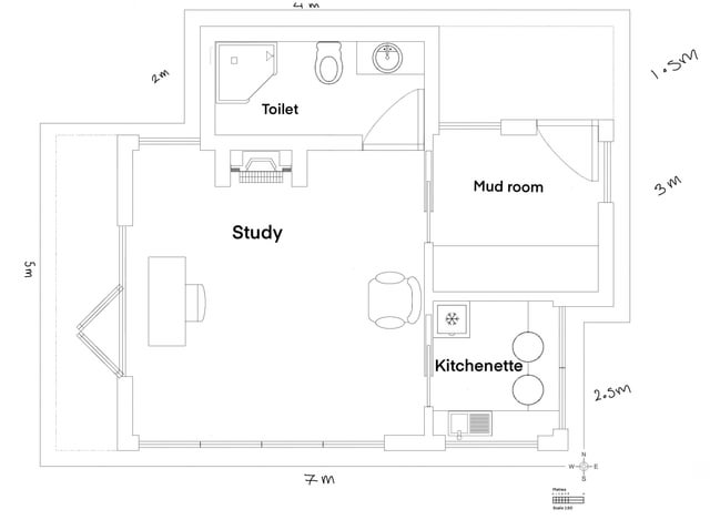 Part of my undergrad project the brief summary is: •A small reception area for basic storage (coat, shoes, umbrella, etc.) • A desk or worktop with some shelves and drawers for reading and writing materials • A small counter with a sink and minimal food-prep provisions (like a kettle and supplies for tea and coffee). (I still need to add some basic shading and neaten up the writing/ measurements ) 😭🙏 submitted by /u/Plane_Response_8608 |