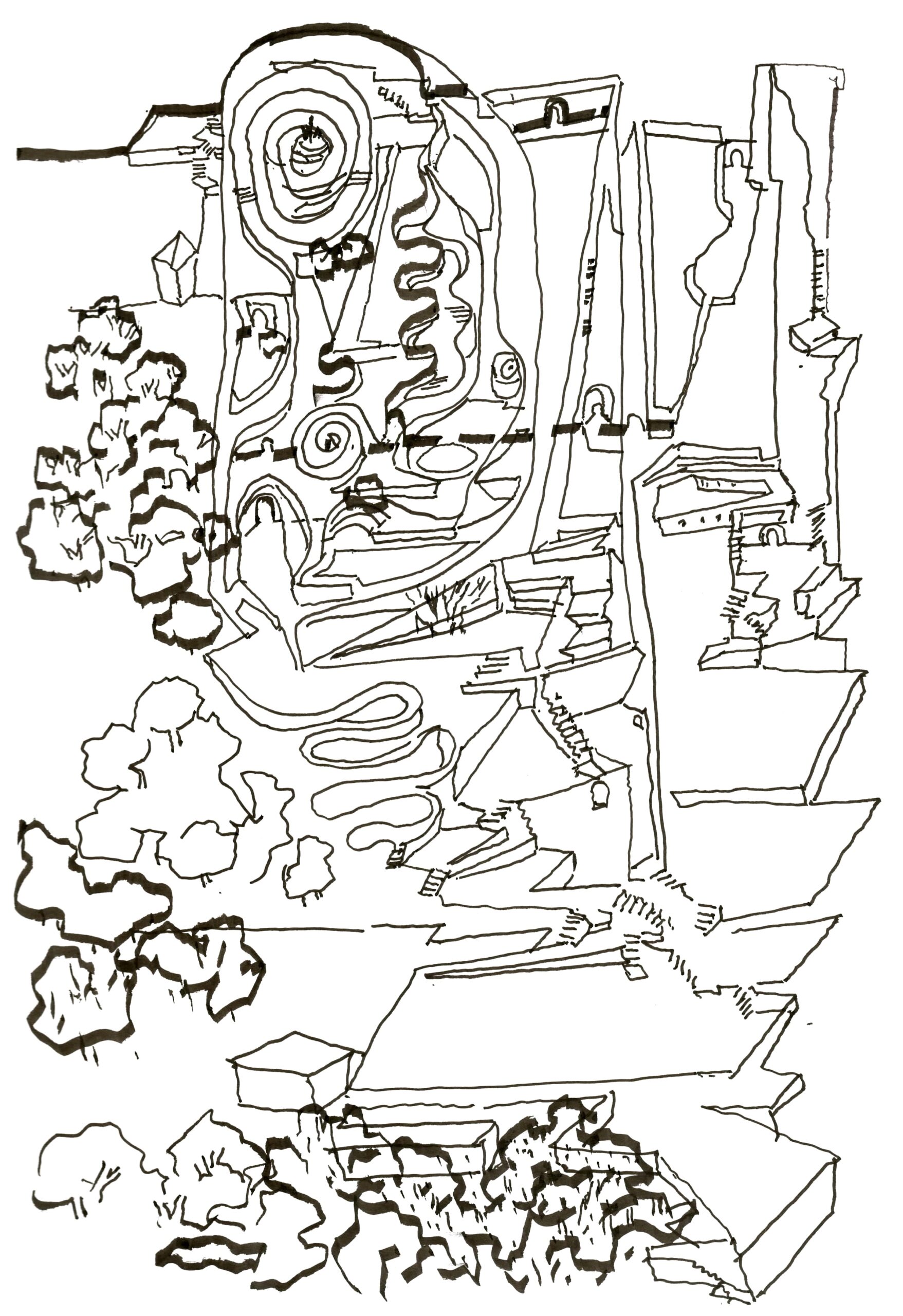 This was the drawing that Doshi then handed over to Khushnu and Sönke to decode and design the retreat. In essence, the idea of the jour­ney was most important. The distance that one needed to traverse. The walk was not linear but rather a landscape to get lost in.