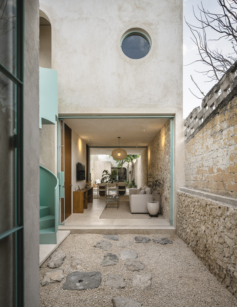 Vistalcielo symbolizes renewal through intimate scale and poetic restraint. Rescuing an abandoned house in Mérida’s historic center, Veinte Diezz Arquitectos fuses regional craftsmanship with contemporary spatial fluidity. The design unfolds as a sequence of courtyards and modules. Subtle curves replace rigid geometry, while regional stone, textured concrete and sky-blue grilles evoke the building’s past with renewed vitality. Natural ventilation and diffused light animate every space, creating moments of calm and connection.