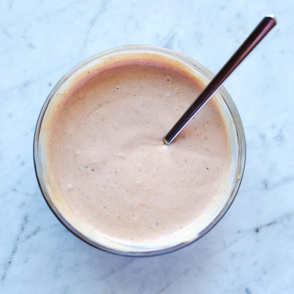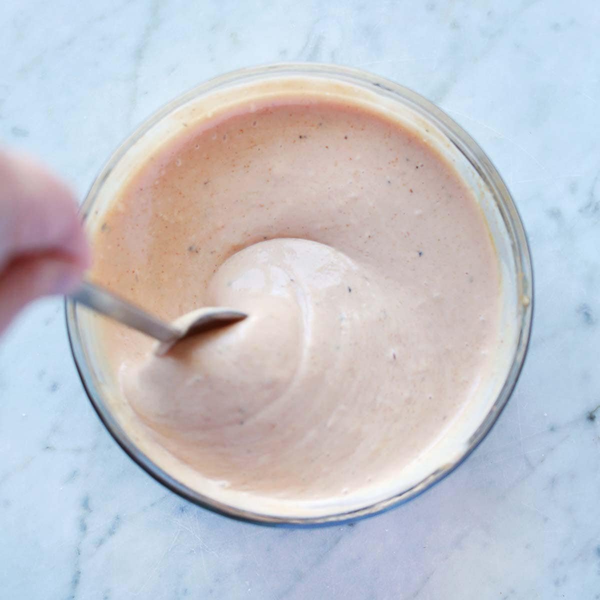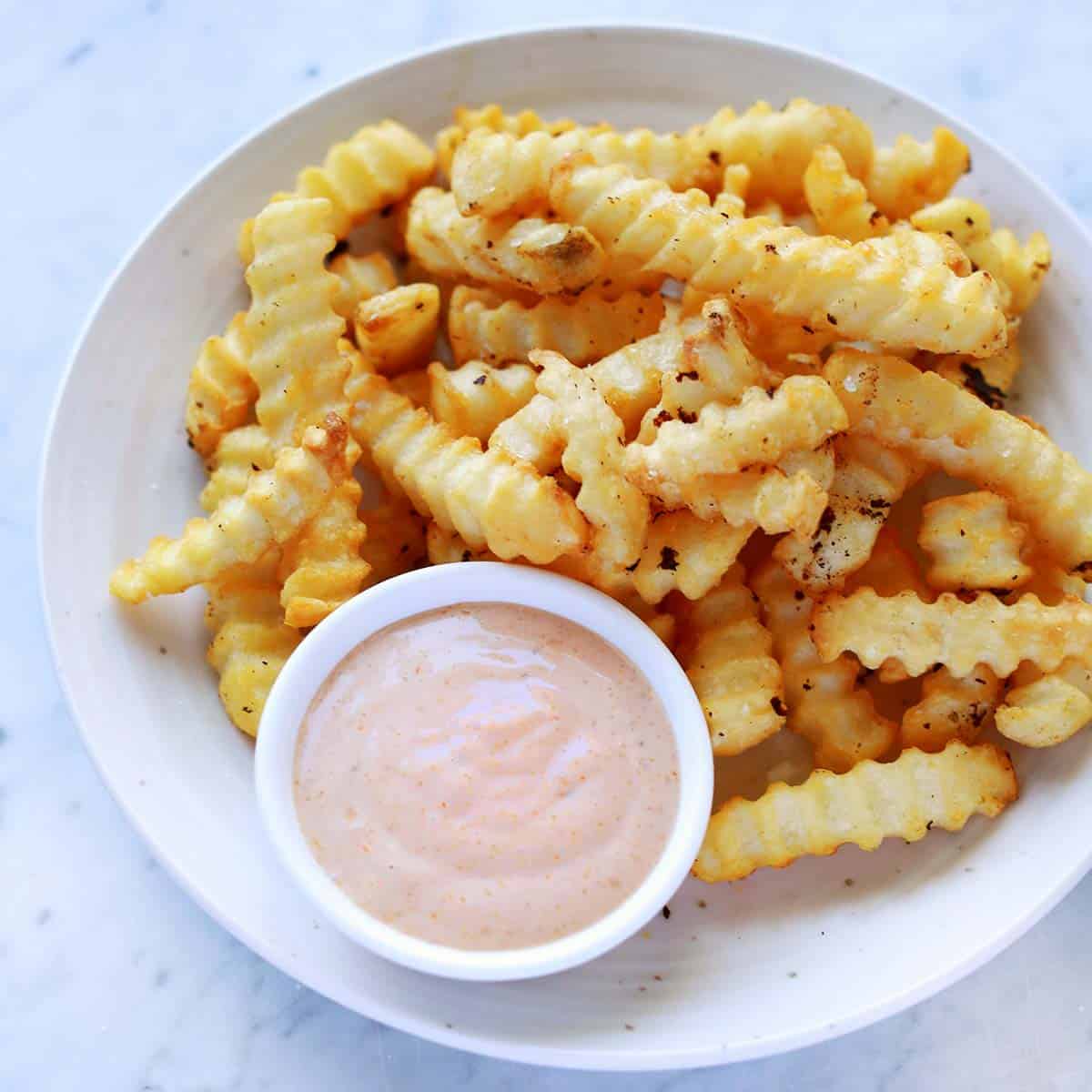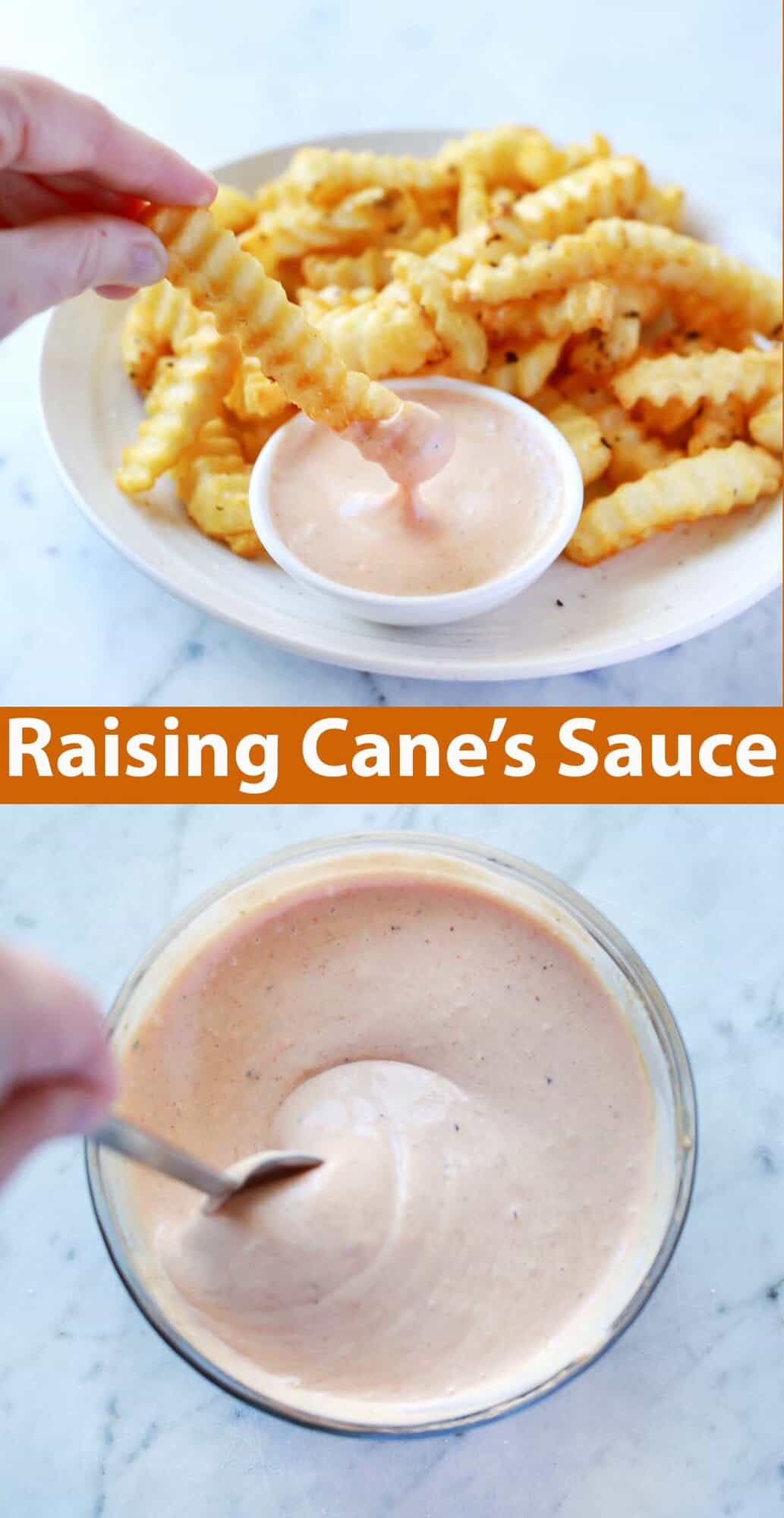 While my kids love Chick-fil-A sauce for me it’s Cane’s Sauce forever! I love the bold, garlic, vinegar-y flavor of Raising Cane’s sauce and this homemade copycat recipe is SO easy to make. If I make air fryer french fries you better believe I am whipping up some homemade cane sauce to go with it.