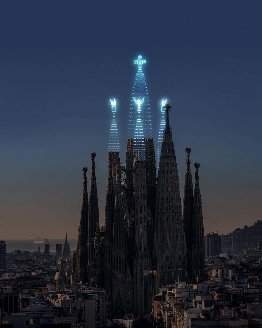 Some architectural landmarks have sustained damage over the centuries, and others were never completed. Thus Dutch creative team Studio Drift collaborated with drone show company Drone Stories to visually complete structures like the Colosseum and the Sagrada Familia.
