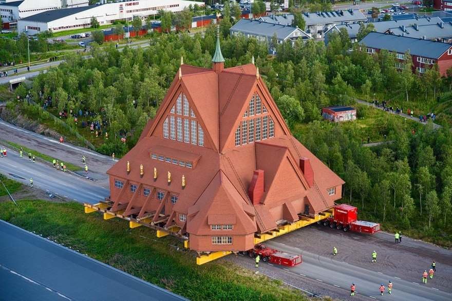 In Sweden, Kiruna Church is one of the country’s largest wooden structures. It was also in danger of being swallowed up by the earth, thanks to nearby mining activity. Thus Dutch engineering firm Mammoet was hired to move the entire building, intact, to a new location.