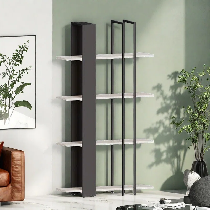 This bookcase feels architectural before it feels practical. The open structure and slim vertical lines give it a sculptural presence, even when sparsely styled. It works just as well in a living room corner as it does behind a desk or along a hallway wall.