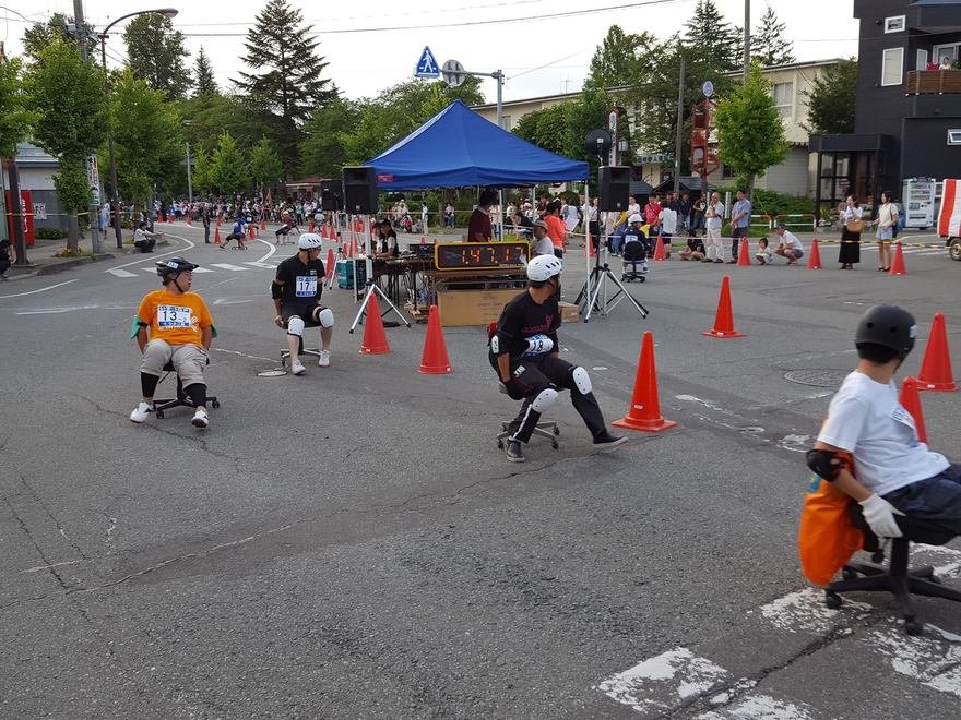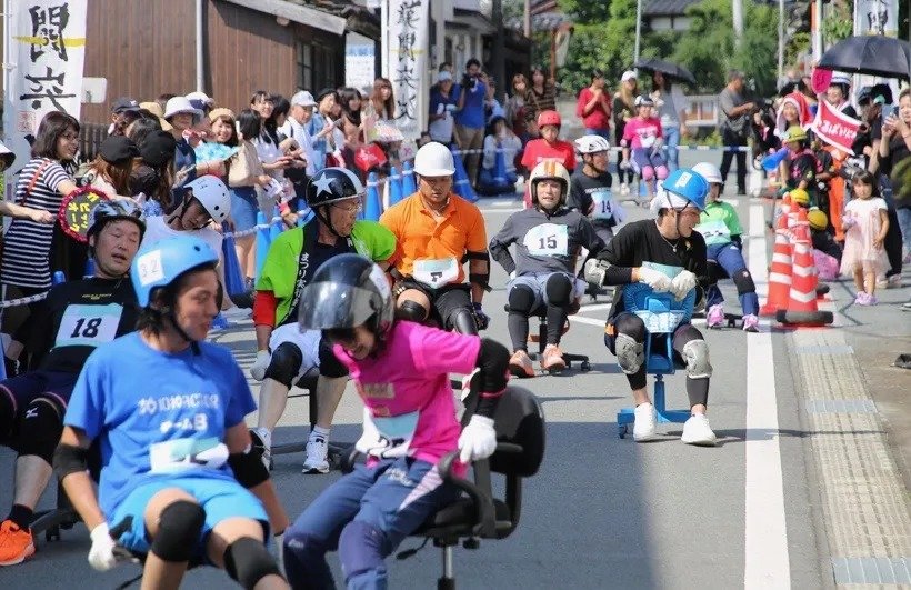 For the past 16 years, the Japan Office Chair Racing Association (JORA) has sponsored the Isu-1 GP, a Gran-Prix-style racing event. Held in ten cities around the country, the rules are pretty simple: Your vehicle is an off-the-shelf office chair that you propel with your legs. Anyone caught modifying their chair will be disqualified. And you must wear a helmet, gloves, elbow pads and knee pads.